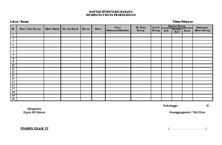 Sebelum melakukan coding php, pastikan anda sudah menginstal aplikasi xampp atau sejenisnya di folder c:xampp dan pastikan apache dan mysql telah diaktifkan. C) membuat laporan triwulan tentang laporan mutasi barang. Instansi, sekolah, sim sekolah (meliputi managemen data siswa, pembayaran, nilai, absensi harian, pembagian kelas, inventaris barang. Dengan adanya tata cara tersebut tentunya akan semakin memudahkan anda dalam melakukan pengecekan barang sekolah terutama inventaris. Urut pembukuan barang barang barang merek satuan pembuatan barang dokumen dan barang perolehan nomor ukuran tanggal dsb penyerahan. Sebagai bahan laporan tentang data inventaris barang yang dimiliki sekolah, guru maupun ptk tata usaha akan membutuhkan format kartu. Kartu inventaris barang, contoh buku inventaris barang/perlengkapan sekolah paud (tk kb tpa sps). Setiap koleksi barang atau perlengkapan yang menjadi milik lembaga paud harus didaftar/diinventarisir untuk memudahkan lembaga mengetahui kondisi barang saat ini. Cara download silahkan klik sebelah kanan atas download dokumen. Bagi teman guru sekolah dasar yang bingung cara mengisi blangko inventaris barang (kib) bisa anda download pedoman dan cara pengisiannya disini. Aplikasi cari kode barang inventaris sekolah dengan excel microsoft excel aplikasi microsoft. Detail contoh format inventaris barang sekolah pdf dapat kamu nikmati dengan cara klik link download dibawah dengan mudah tanpa adanya iklan yang mengganggu. 2nd grade multisyllable words backlinks: